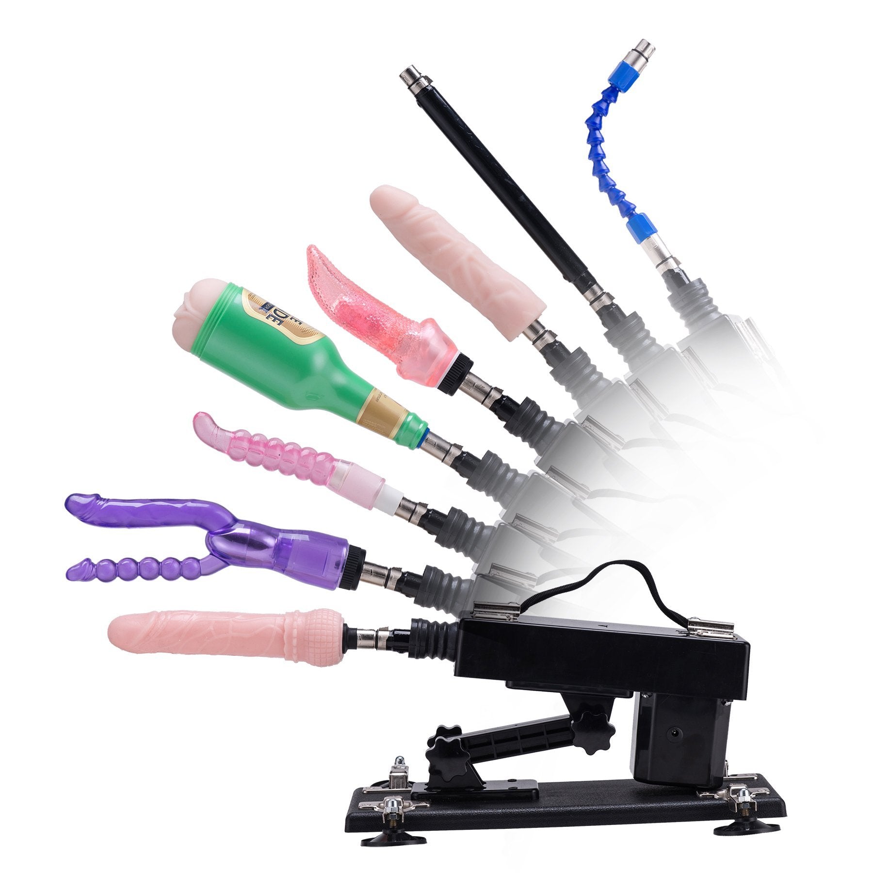 - PORT DE FIXATION STANDARD pour une variété de godes de machines sexuelles standard.