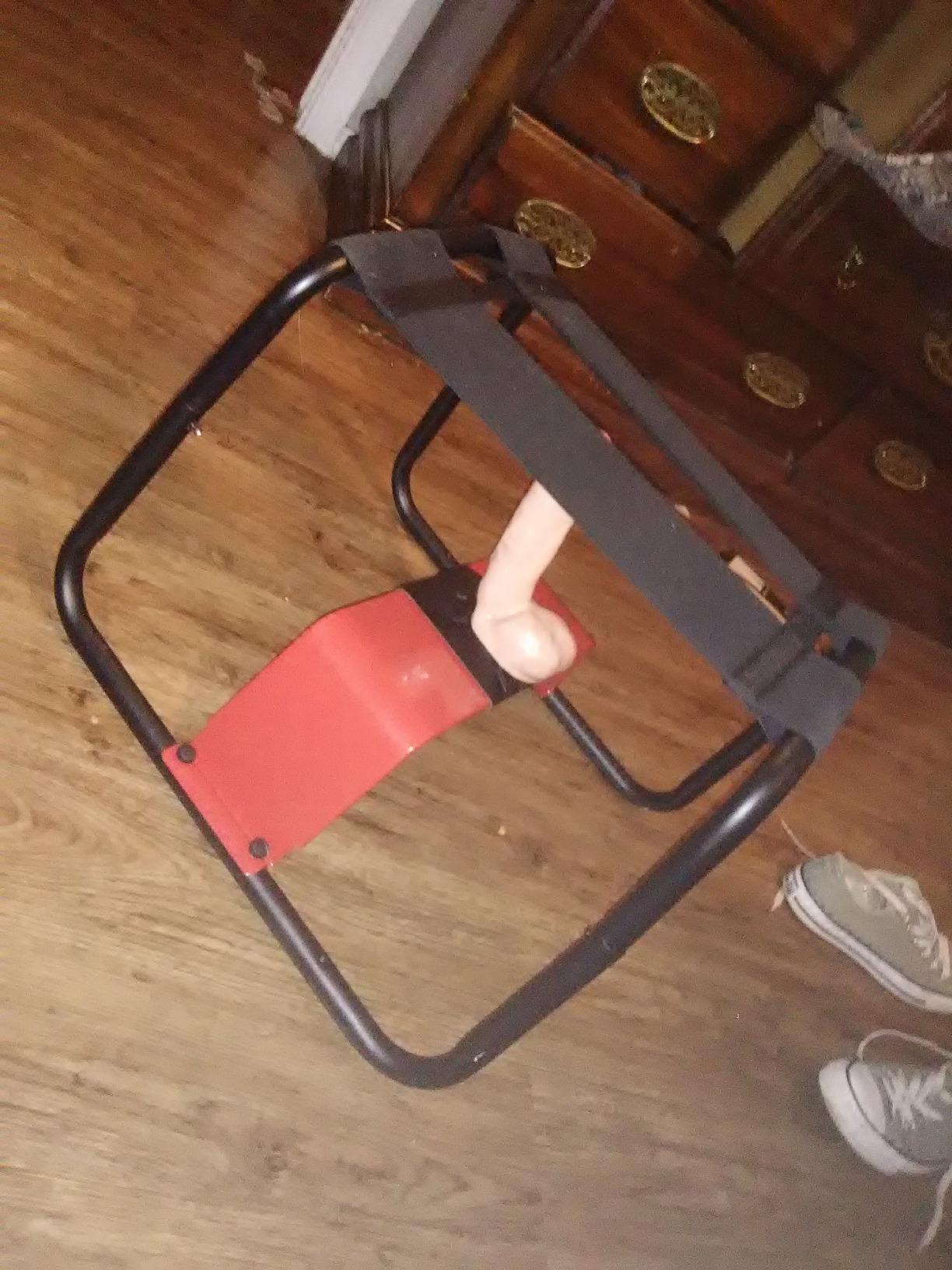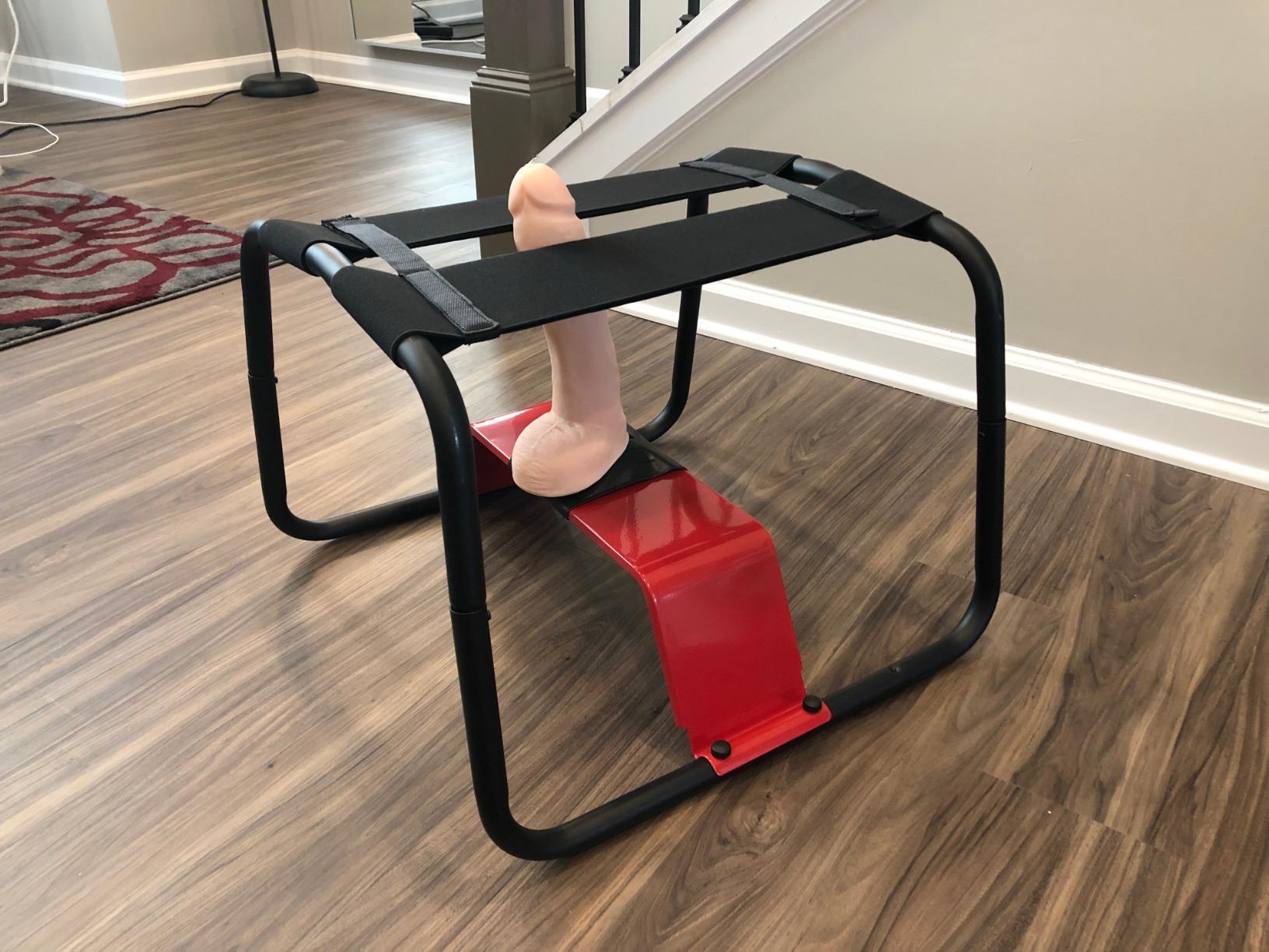 Attach your favorite dildo and this sex stool will give you the ride of your life! The banging bench allows you to simulate sex from the top as you bounce up and down, aided by the stretchy straps of the seat. Use it on your own for penetrating intensity that is easy to control, or put on a show for your partner! You can even remove the red Raiser bar and use it to straddle your lovers face while they pleasure you from below! Use the included strap-on harness to secure a dong, or simply attach a suction-cup dildo to the Raiser bar. The banging bench is easy to set up and discreet to store, with a durable steel frame that is built to last. Measurements: 14.5 inches in height, 19 inches in width, 18 inches in depth. Material: Metal, ABS plastic. Color: Red. Note: dildo not included.