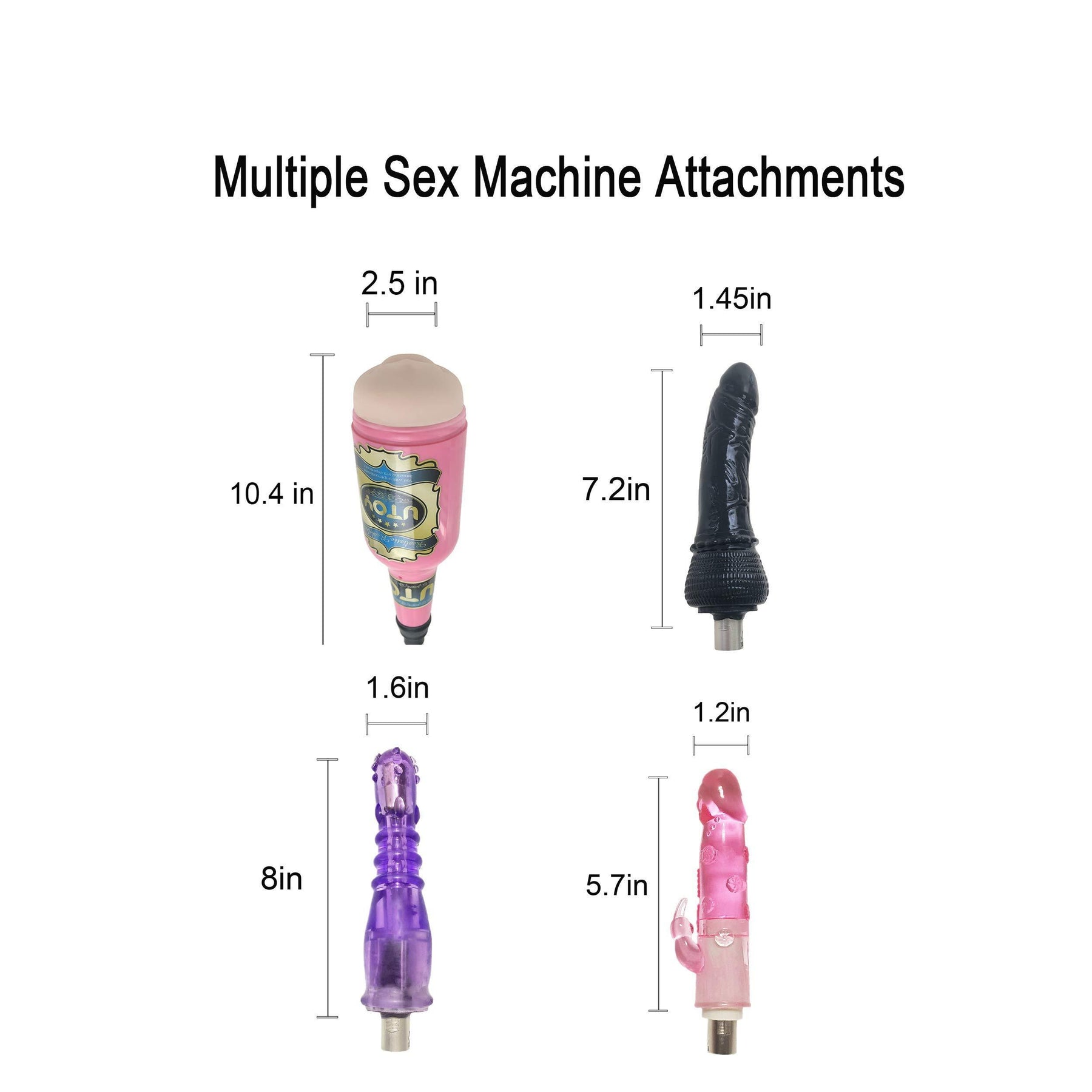 - Sex Machine Attachments Combination: 3 different dildos + 1 oral sex cup.